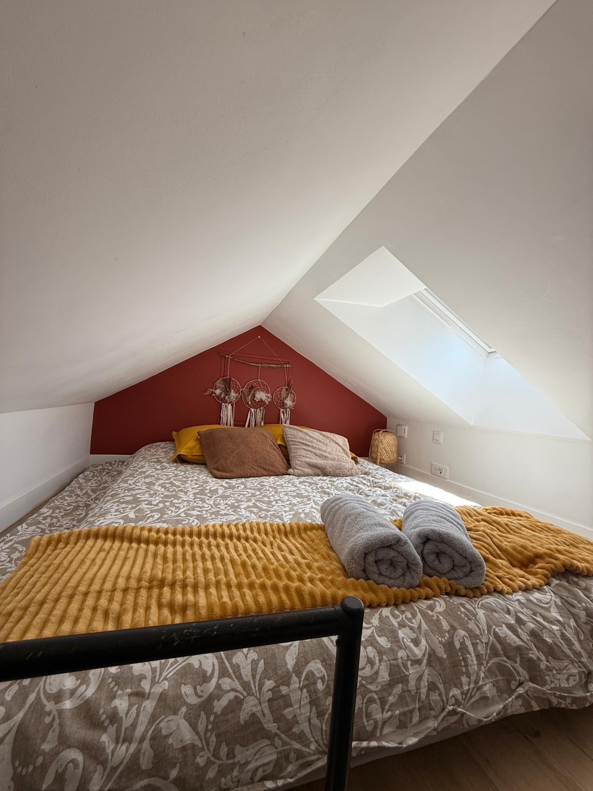 Situé au 1er étage, avec accès indépendant, cet appartement est constitué d’une chambre et d’une mezzanine avec lit double (140cm), d’un salon/cuisine et d’une salle de bain commune.